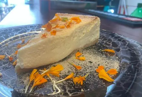 Porción de Tarta de queso combinada con crema de avellana sabor Kínder