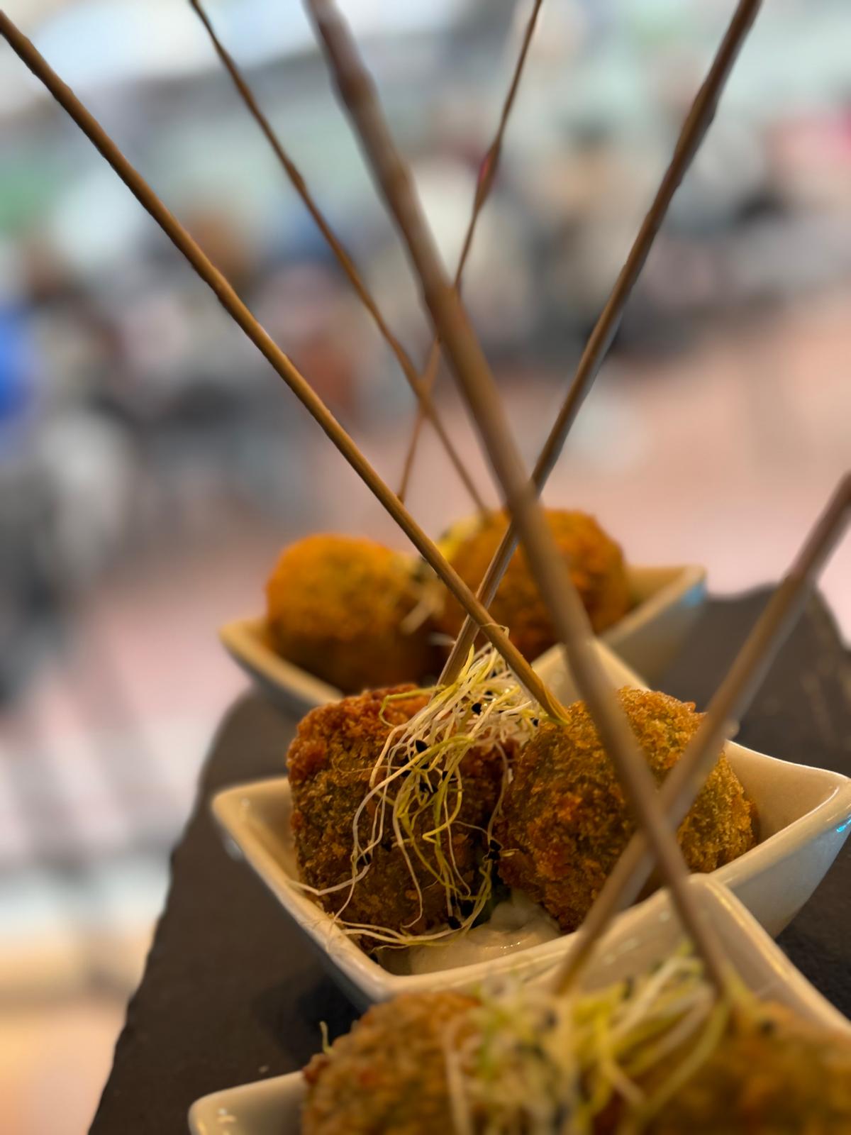 Aquí, cada rincón está pensado para sorprender y deleitar. Esculturas cinéticas de gran tamaño, creadas en bronce y vidrio, están diseñadas para capturar el movimiento, mientras fluyes entre nuestras estaciones de comida en vivo, disfrutando de una experiencia sensorial única.